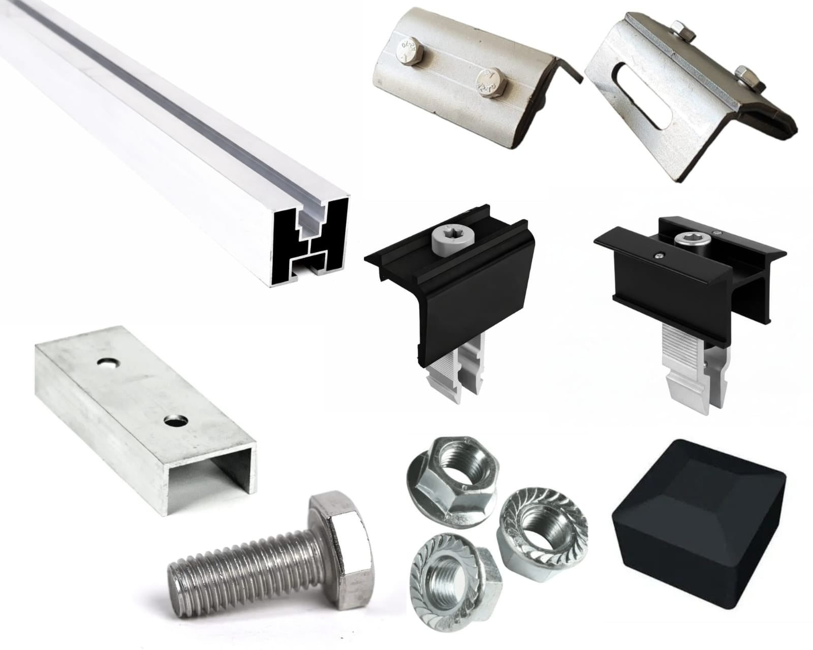 Zunächst werden die PV-Dachfzklemmen mongett, majd a PV-Profil direkt mit M10-Schrauben rögzítve. Das System ist sehr leicht, robust und einfach zu montieren . Alle Componenten besten aus korossionsbeständigen Materialien wie Aluminium und Edelstahl H17 .